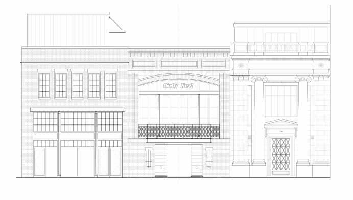 City Fed. The historic structure was restored back to its original grandeur with ornate plaster crown molding, tall ceilings, and marble floors to house an Italian restaurant called Ravello. Complete with the original antique heart pine floors, it is also used for private event spaces that includes two mezzanines, one that overlooks the restaurant, as well as a courtyard, cellar and ballroom.